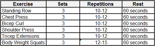 · 5 minutes Warm up performing push ups and bodyweight squats 12 of each rest for 30 seconds and repeat 3 times.
